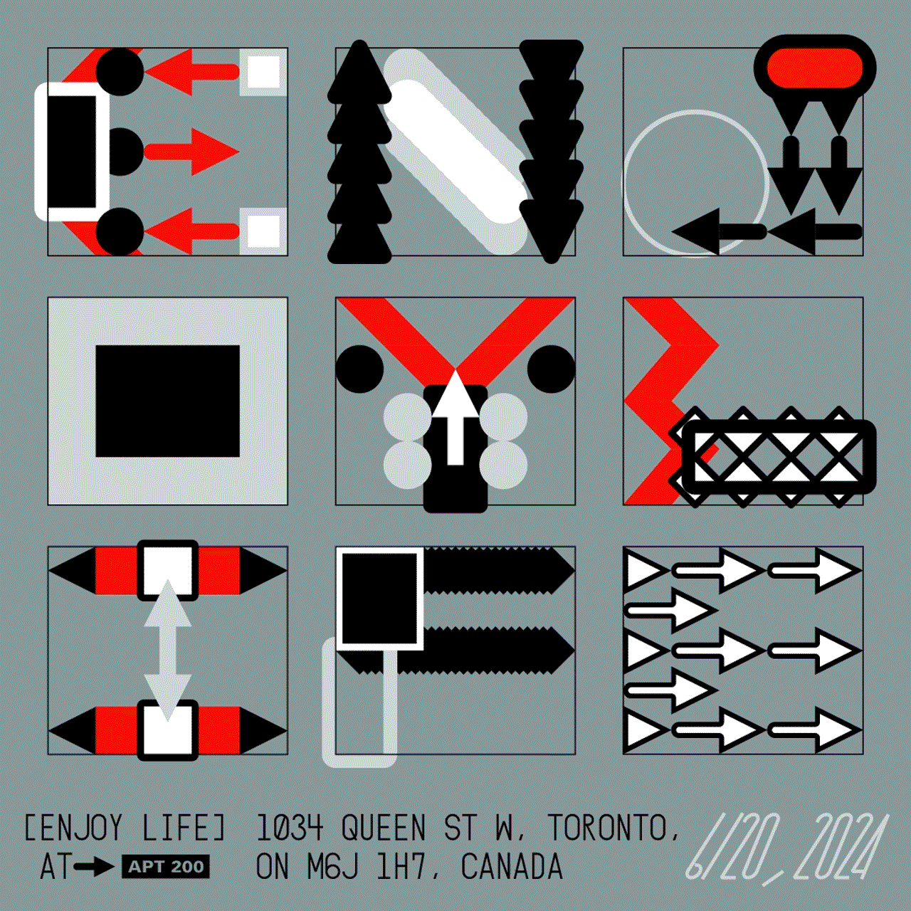 ENJOY LIFE at Apt200 TorontoArt Direction: Zin NagaoGraphic Design: Zin NagaoMotion Graphics: Zin NagaoClient: Apt200 Toronto