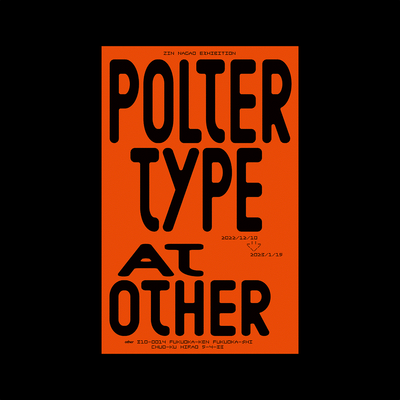 POLTERTYPECreative Direction: Zin NagaoArt Direction: Zin NagaoGraphic Design: Zin NagaoType Design: Zin NagaoSpace Design: Zin NagaoClient: Gallery “other”